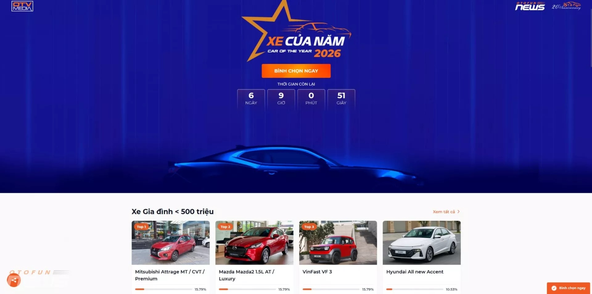 25 Tháng mười hai, 2025Xe Của Năm 2026 mở cổng bình chọn, thay đổi cách tiếp cận người dùng