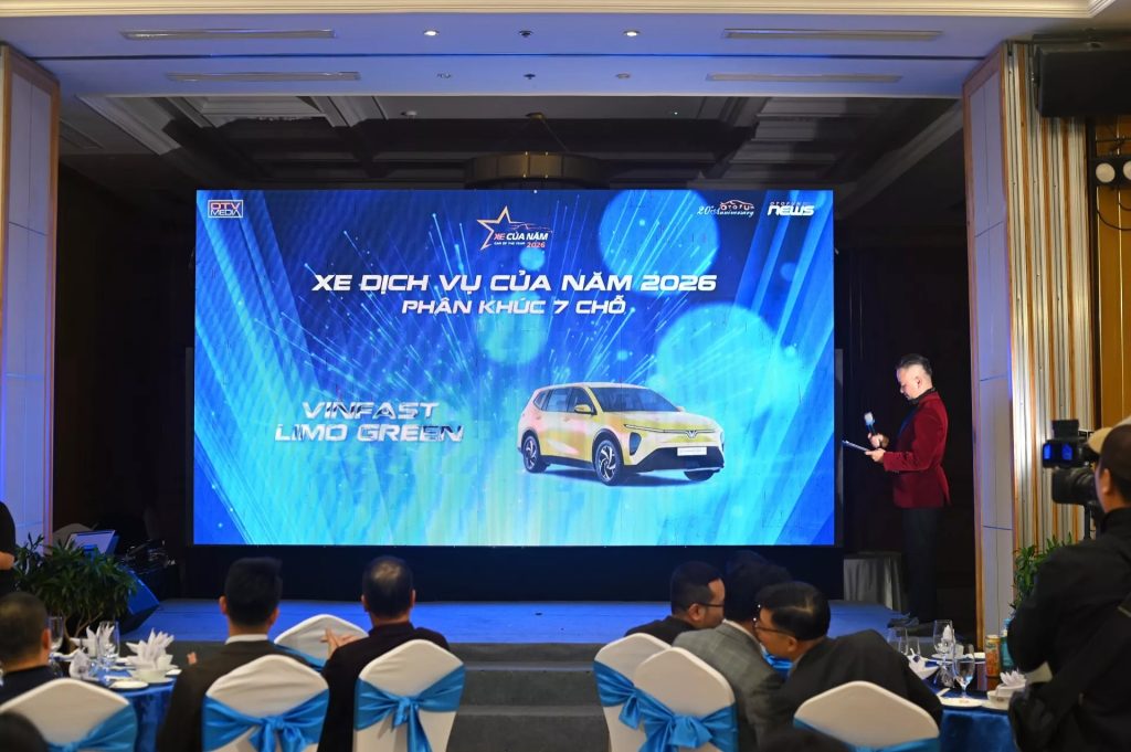 Trong đó, VinFast Limo Green trở thành “ngôi sao” tại Lễ công bố khi được xướng tên với ba danh hiệu Xe Của Năm 2026, bao gồm: Xe Dịch vụ của năm 2026, Xe Điện của năm 2026 và Xe Triển vọng 2026. “Cú ăn ba” của mẫu MPV 7 chỗ VinFast cho thấy sự đánh giá cao từ hội đồng giám khảo lẫn cộng đồng người dùng.